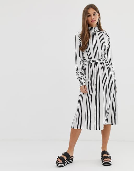Robe Rayée Longue: Longue robe rayée avec fente latérale.